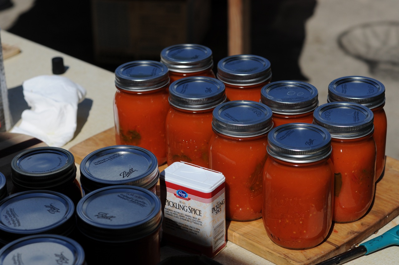 Sterilized lids and rims were added and while the mixture was still hot, they were processed for 20 minutes in a boiling water bath.